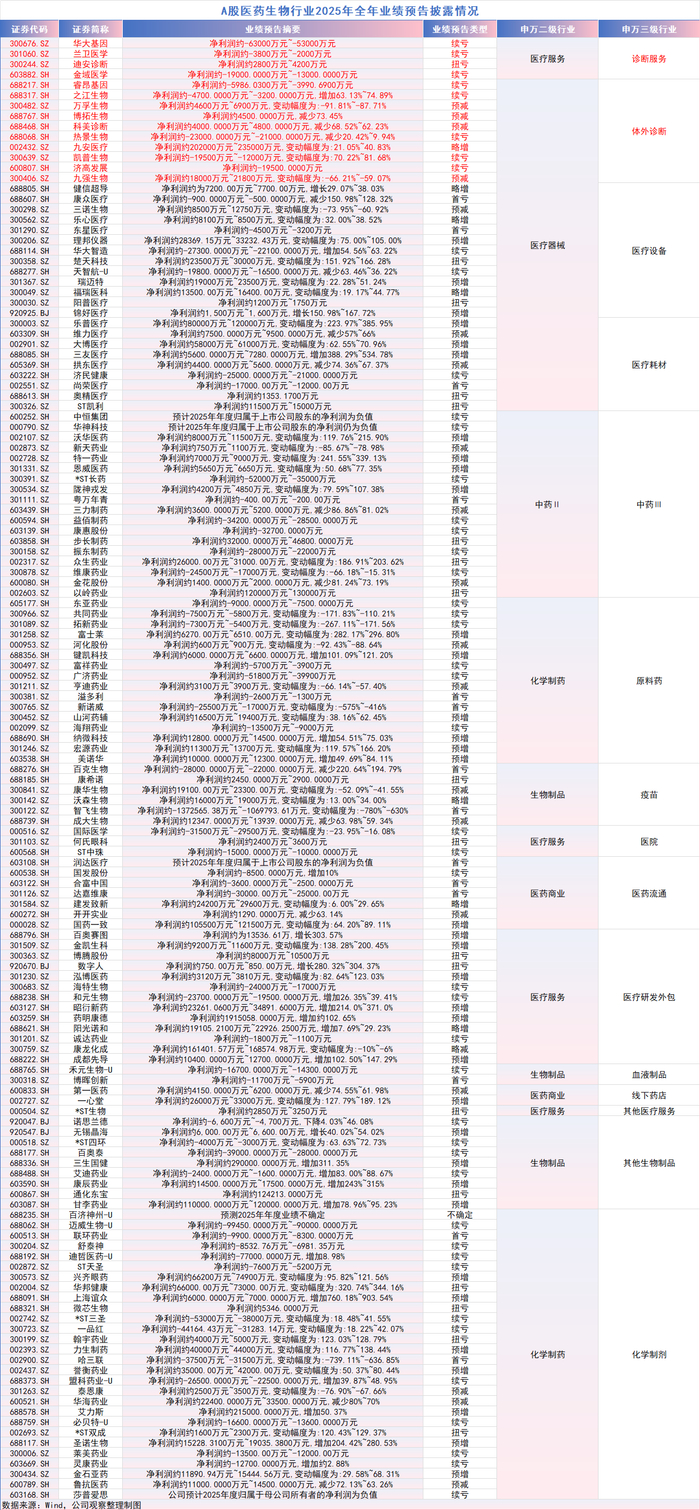 这一转型压力直观体现在2025年业绩预告中。笔者梳理发现,A股IVD相关公司(涵盖诊断服务、体外诊断细分领域)业绩呈现分化显著、整体承压的特征,多家企业持续亏损或亏损扩大,部分企业净利润同比下滑超50%。仅九安医疗呈现“略增”,预计净利润超20亿元,主要源于资管业务在大类资产配置方面表现良好;此外,迪安诊断实现扭亏,行业整体景气度偏弱。