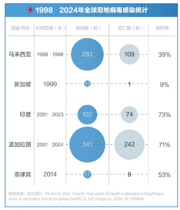 从病毒本身的传播历史来看,其引发市场关注并非偶然。根据世卫组织资料,尼帕病毒自1998年首次在马来西亚半岛被发现以来,已在南亚地区多次爆发,是当地脑炎暴发的主要诱因。