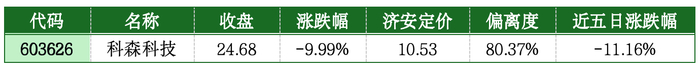 风险提示:该股偏离济安定价80.37%,估值虚高,业绩持续亏损,下游消费电子景气度低迷,股价已进入下行通道,调整风险较高,建议谨慎规避。
