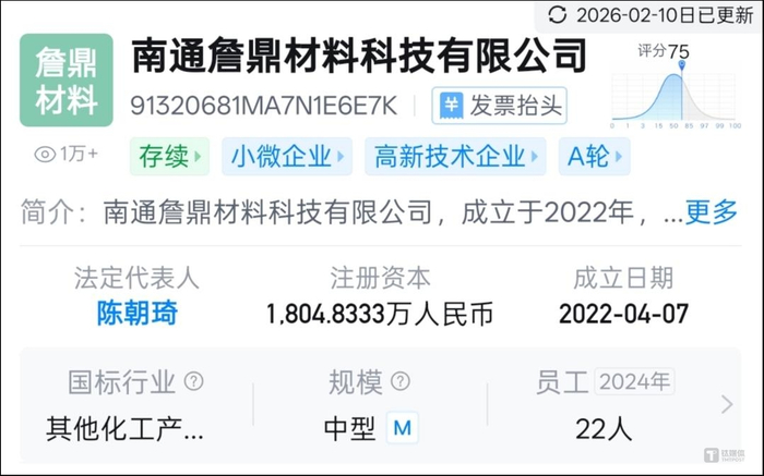 时间回溯至2022年,AI算力基础设施建设提速,浸没式液冷成为AI服务器散热的核心路线,电子氟化液赛道迎来黄金窗口期。成立仅4个月的南通詹鼎,凭借主营产品的赛道优势,迅速获得资本青睐——国内液晶显示材料龙头八亿时空率先入局,以2000万元现金参与首轮增资,按照投前1.5亿元估值,拿下11.11%股权,将其视为新材料领域的战略布局。