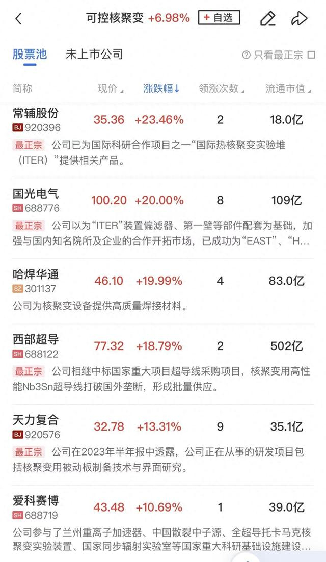 板块上,可控核聚变概念股全线爆发,中洲特材、哈焊华通、国光电气、上海电气、合锻智能、中核科技等个股涨停,西部超导、久盛电气等个股涨超10%。