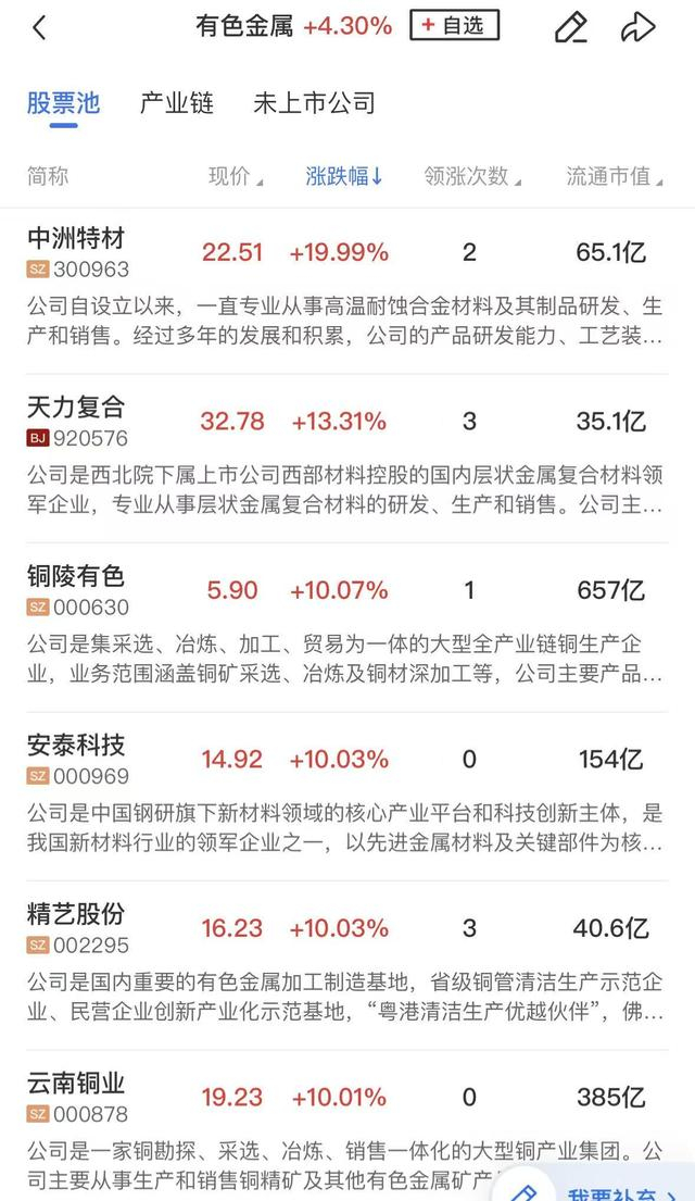 有色金属概念股反复活跃,黄金、铜涨幅居前,精艺股份6天5板,江西铜业、河钢资源2连板,云南铜业、白银有色、四川黄金、山东黄金等同样涨停。