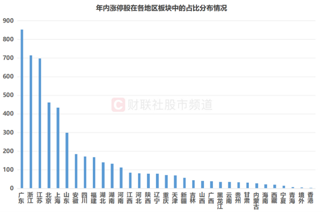 注:年内涨停股在各地区板块中的占比分布情况(截至10月23日收盘)