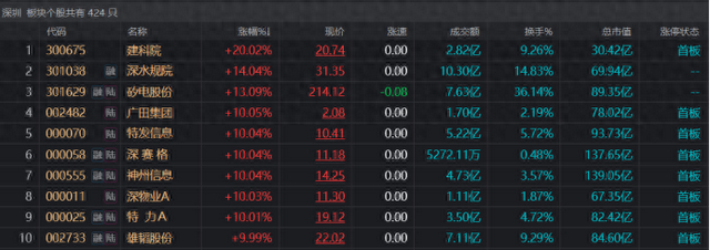 注:深圳地区股今日大批涨停(截至10月23日收盘)