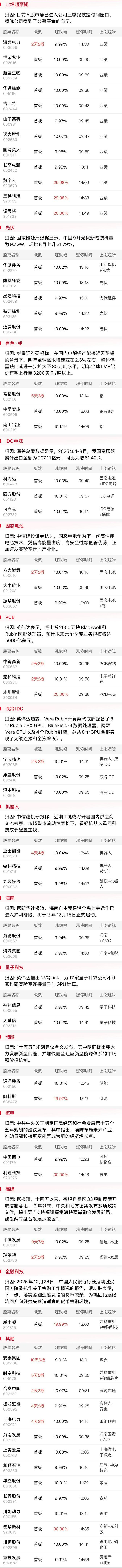 昨晚储能龙头股阳光电源发布2025年三季报,前三季度实现净利润同比增超56%,超出去年全年水平,前三季度储能发货量同比增超七成成为主因,且公司预判明年全球储能市场增速仍能达到40%-50%。光伏、储能概念全天表现强势,阳光电源涨超15%,总市值逼近4000亿。而午后阿特斯、隆基绿能、通威股份等多只光伏概念股涨停,与整个光伏硅料到组件多个环节出厂价上涨对未来业绩的修复预期外,这些光伏全产业链布局龙头未来向电站和储能项目拓展也拥有先发优势。整个储能、电网设备方向的新能源和算力双重属性或仍将得到主流资金重视,成为短期维系算力硬件产业链强势的一大新突破口。不过这类板块与此前领涨的算力硬件端类似,其自身的趋势抱团属性并不支持其持续加速向上,关注回踩短期均线的低吸机会。