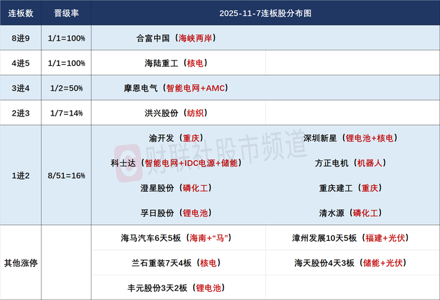 连板晋级率升至36.36%,随着成长赛道在连续反弹后陷入分化,指数震荡之际资金重新回补纯情绪博弈方向,最高标合富中国走出“准地天板”晋级9连板。此外炒地图热度重新回暖,昨日断板的海南自贸概念股海马汽车和福建本地股漳州发展双双走出反包板。随着锂电排产增长需求提振,锂电材料涨价热度从电解液方向持续向磷酸铁锂、隔膜、锂矿等全面扩散,传统化工品方向也展开积极补涨,反映部分成长股资金风偏相对有限,涨价概念成为容纳这类资金的最佳载体。