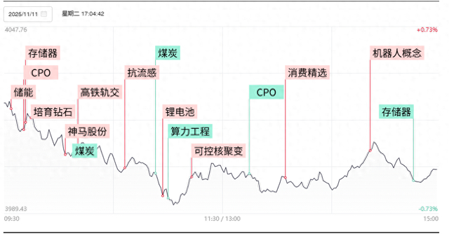 中国科学院半导体研究所宣布,近期研制出光电转换效率为27.2%的钙钛矿太阳能电池原型器件,受此消息提振,钙钛矿电池为首的光伏概念逆势大涨,中来股份、协鑫集成、拓日新能等多股涨停。而国家发改委、国家能源局发布关于促进新能源消纳和调控的指导意见,刺激储能概念卷土重来,海博思创、阿特斯、鹏辉能源等位居涨幅前列。不过此前受益北美电网出海的电网设备方向出现分化,金盘科技、三变科技、特变电工等悉数展开回落,炬华科技、三星医疗等电表股逆势涨停主要受到国家电网招标单价超预期利好驱动。因此电网设备端内部的高低切也反映该板块部分资金的畏高情绪,若整个AI硬件端情绪降温,电网股在此前经历大幅上涨后也难独善其身。