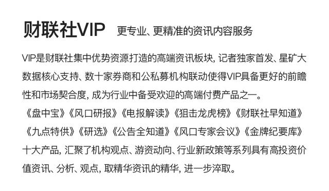 注:财联社VIP为内容资讯产品,并非投资建议。以下内容仅为资讯价值展示非对相关公司的推荐建议,非未来走势预测。投资有风险,入市需谨慎。
