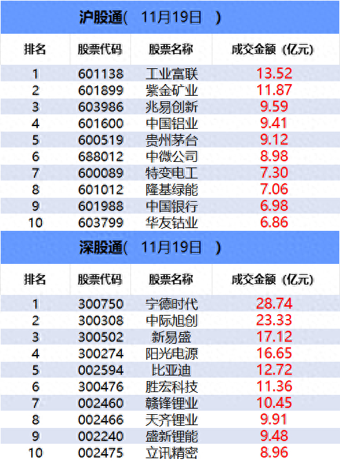 从沪股通前十大成交个股来看,工业富联位居首位;紫金矿业和兆易创新分居二、三位。
