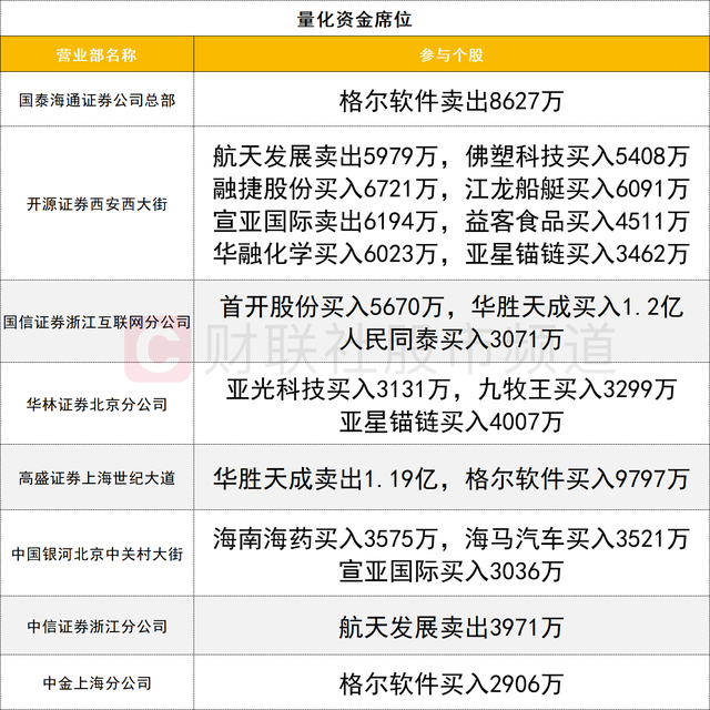 量化资金活跃度较高,华胜天成获国信证券浙江互联网分公司席位买入1.2亿,同时遭高盛证券上海世纪大道席位卖出1.19亿。