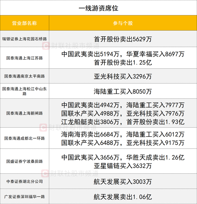 一线游资活跃度较高,国联水产今日20cm涨停,获两家一线游资席位(国泰海通证券成都北一环路、国泰海通证券上海新闸路)合计买入1.14亿。首开股份遭两家一线游资席位(国泰海通证券上海新闸路、国泰海通证券上海江苏路)分别卖出1.93亿、1.25亿。