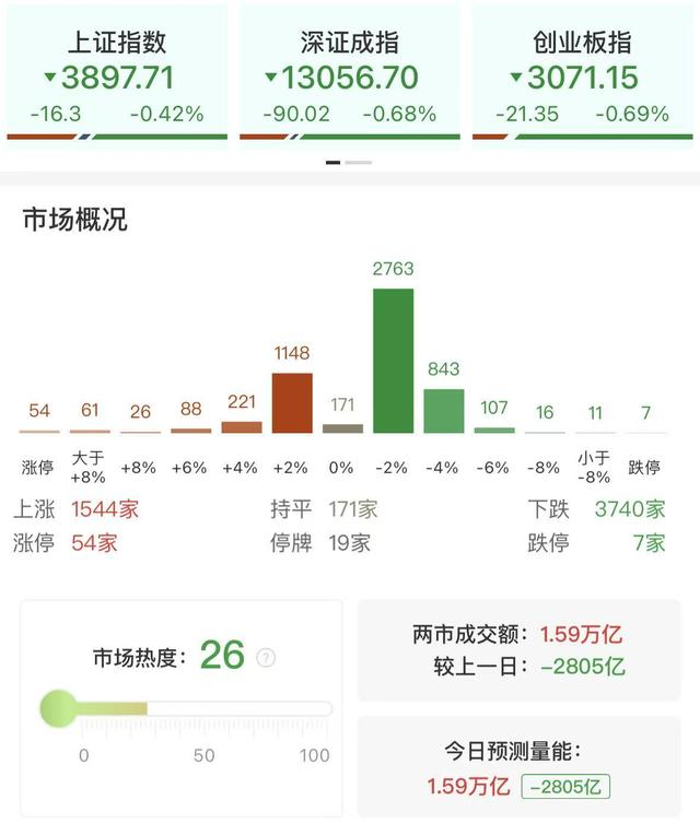 今日市场震荡调整,三大指数全线下挫,全市场超3700股收跌。不过需注意的是,今日量能再度萎缩,大跌个股数量较少市场并没有涌现出明显的恐慌性卖压,整体而言尚处于合理的涨多修正范畴。但明日走势较为关键,若三大指数能继续守稳于5日线之上,短线震荡向上的反弹结构仍有望得以维持,反之一旦再度出现放量下跌情形时,则需警惕指数二次探底的风险。从盘面角度来看,与前几日科技权重引领短线情绪不同的是,今日市场再度陷入缩量整理,资金更多选择了个股的抱团炒作,前期人气高标均走出了较佳的正向反馈。预计后市仍将在短线投机炒作与权重趋势演绎两大风格之间反复切换,应对上把握节奏仍是关键。