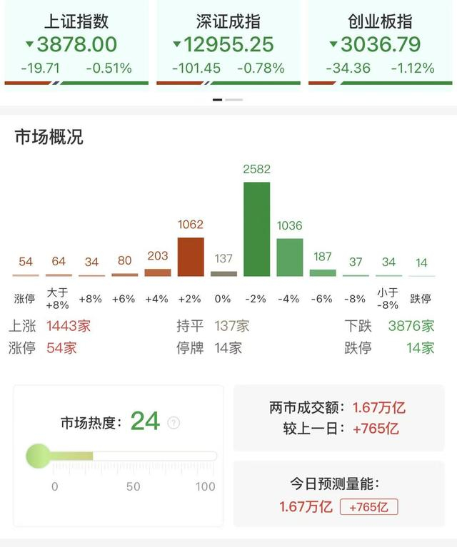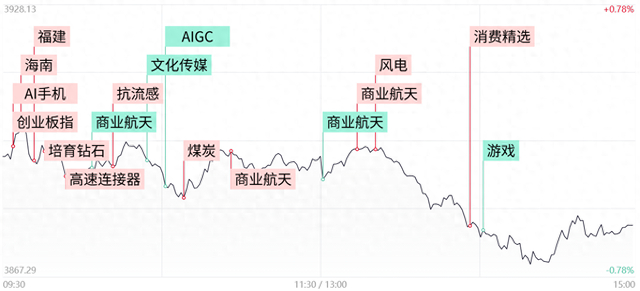 财联社12月3日讯,市场全天震荡调整,创业板指跌超1%,早盘一度涨超1%。沪深两市成交额1.67万亿,较上一个交易日放量765亿。全市场超3800只个股下跌。从板块来看,超硬材料概念表现活跃,黄河旋风涨停。煤炭板块走强,安泰集团2连板,大有能源、新大洲A涨停。风电板块拉升,大金重工、德力佳双双涨停。商业航天概念午后冲高,顺灏股份4连板,航天机电4天2板。下跌方面,AI应用概念集体走弱,福石控股、因赛集团大跌。截至收盘,沪指跌0.51%,深成指跌0.78%,创业板指跌1.12%。