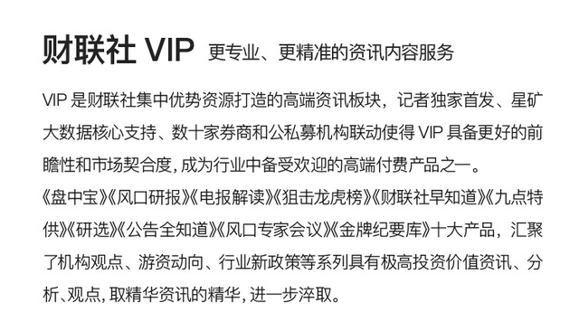 注:财联社VIP为内容资讯产品,并非投资建议。以下内容仅为资讯价值展示非对相关公司的推荐建议,非未来走势预测。投资有风险,入市需谨慎。