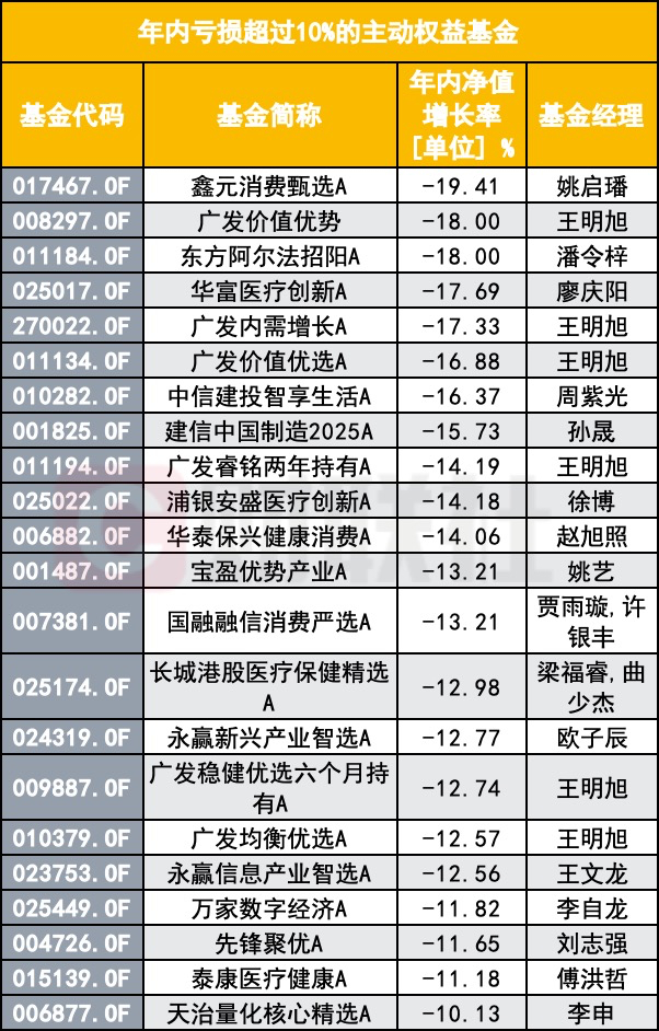 尽管整体市场回暖,仍有217只主动权益基金在年内录得负收益,这批“落后者”中,既有消费医疗等板块反弹不足所致,也不乏重仓失误或调仓失当的典型案例。