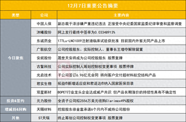 中国人保(601319.SH)公告称,根据中央纪委国家监委网站于2025年12月6日所披露的消息,中国人民保险集团股份有限公司(“本公司”)副总裁于泽涉嫌严重违纪违法,目前正接受中央纪委国家监委纪律审查和监察调查。该事项不影响本公司经营管理。