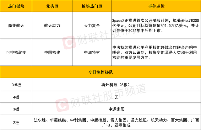 个股层面来看,商业航天股延续强势,再升科技5连板,龙洲股份8天7板,顺灏股份11天7板,航天动力、西部材料6天4板,北交所天力复合30CM2连板,航天发展、永鼎股份、超捷股份等延续强势上涨结构。不过需注意的是,如中国卫星、上海瀚讯、雷科防务、银河电子等前期人气股也遭遇了明显的冲高回落。反映出板块内部个股的分化加剧,越来越多的资金尝试进行低位扩散性炒作。
