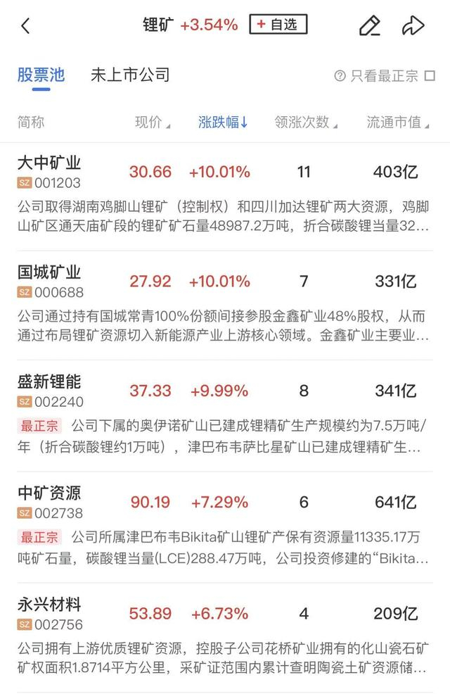 锂矿概念震荡反弹,盛新锂能、大中矿业、国城矿业均涨停,中矿资源、永兴材料、红星发展、融捷股份等涨幅居前。消息面上,广期所碳酸锂主力合约日内涨超5%,一度突破16.4万元/吨。