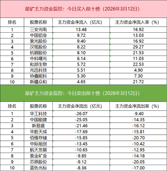 从个股主力资金监控数据来看,主力资金净流入前十的个股所属板块较为分散,三安光电净流入居首。