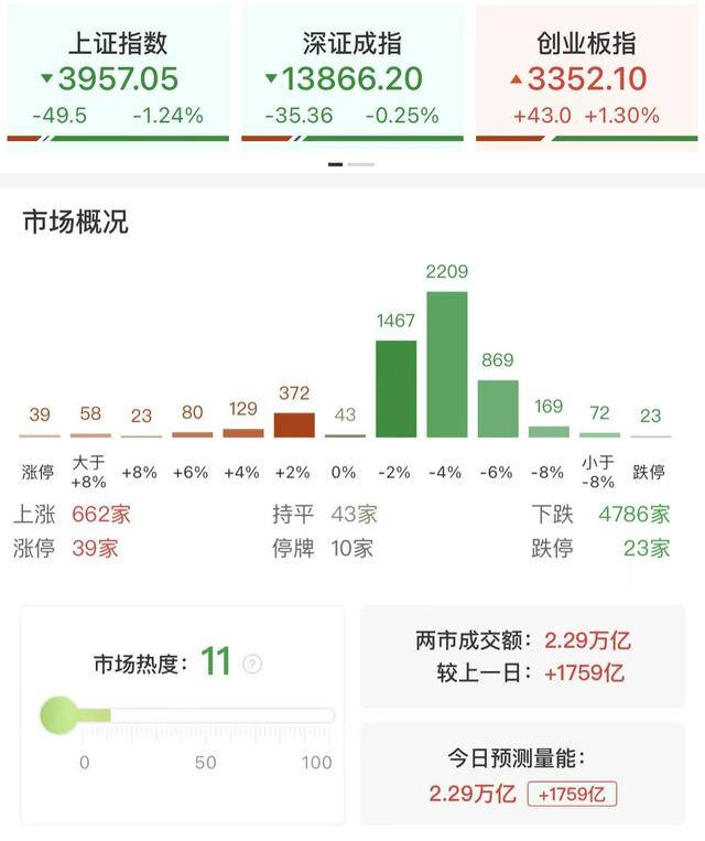 财联社3月20日讯,市场全天冲高回落,沪指震荡调整失守半年线,跌破4000点整数关口,创业板指盘中刷新年内新高后快速回落。黄白二线分化明显,中小盘股普跌,微盘股指数跌超3%。沪深两市成交额2.29万亿,较上一个交易日放量1759亿。盘面上,全市场连续两日超4700只个股下跌。从板块来看,电力板块反复活跃,华电辽能5连板,韶能股份3连板,华电能源2连板,银星能源、广西能源涨停。储能概念同样走强,首航新能涨停续创历史新高,正泰电源反包涨停。算力硬件概念盘中走高,源杰科技触及20CM涨停,新易盛涨超8%创历史新高。下跌方面,化工板块下挫,金牛化工、潞化科技、金正大、红宝丽跌停。算力租赁概念集体走弱,协创数据触及20cm跌停,宏景科技等多股大跌。截至收盘,沪指跌1.24%,深成指跌0.25%,创业板指涨1.3%。