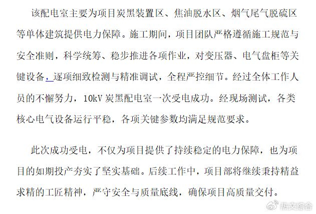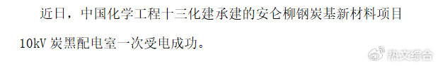 中国化学工程十三化建安仑柳钢项目炭黑配电室顺利受电