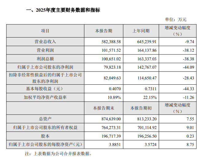 财报显示,神州泰岳2025年实现营业总收入582,388.58万元,较上年同期下降9.74%;扣除非经常性损益后的归属于上市公司股东的净利润82,049.63万元,较上年同期下降28.43%;归属于上市公司股东的净利润79,823.18万元,较上年同期下降44.09%。
