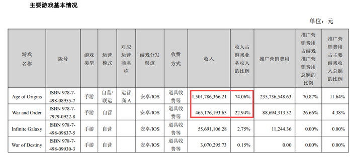 根据公司2025年半年报披露,神州泰岳2025年上半年来自《Age of Origins》《War and Order》的收入分别为15.02亿元、4.65亿元,合计占公司游戏业务收入的比例超过95%。
