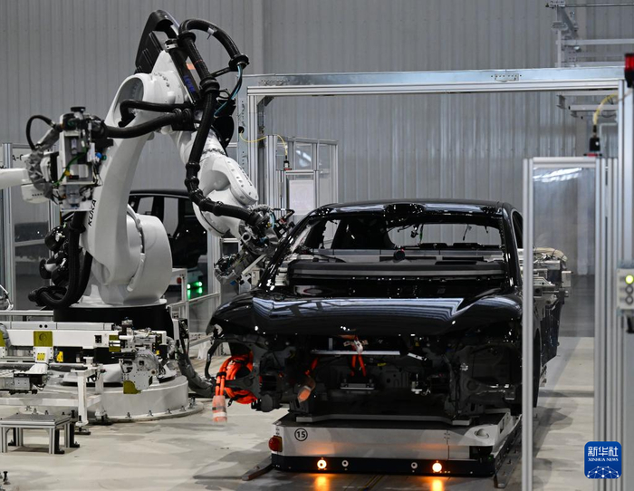 2025年7月1日在合肥市新桥智能电动汽车产业园蔚来第二工厂拍摄的新能源汽车生产线。