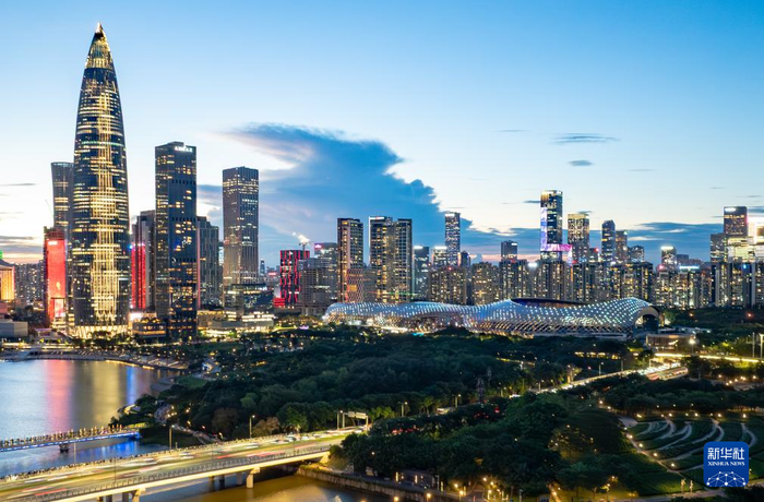 这是位于广东省深圳市南山区的深圳湾体育中心以及周边建筑(2025年6月25日摄,无人机照片)。