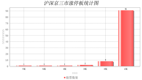 7板共1支,5板共1支,4板共1支,3板共2支,2板共8支,1板共91支,市场当前最高板为7连板!