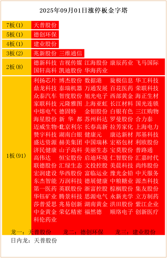 今天是2025年09月01日,我们来复盘一下今日的涨停板。