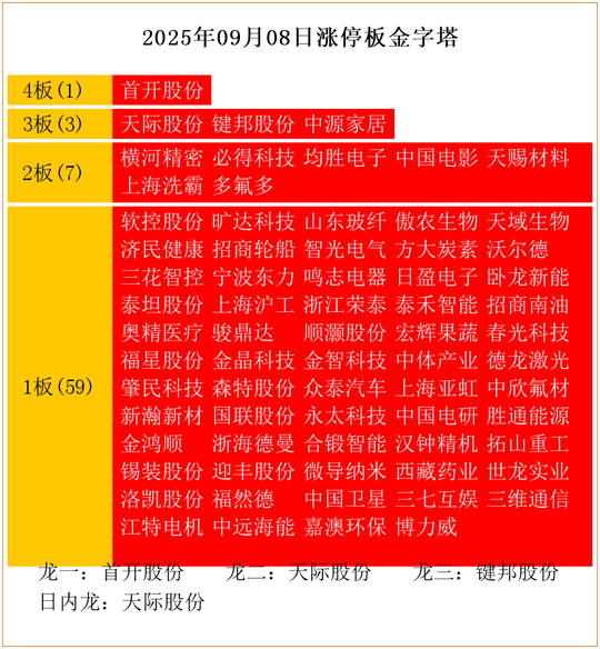 今天是2025年09月08日,我们来复盘一下今日的涨停板。