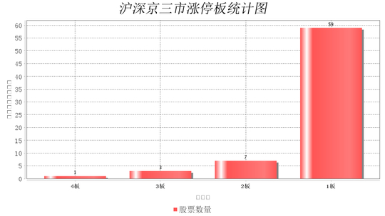 4板共1支,3板共3支,2板共7支,1板共59支,市场当前最高板为4连板!