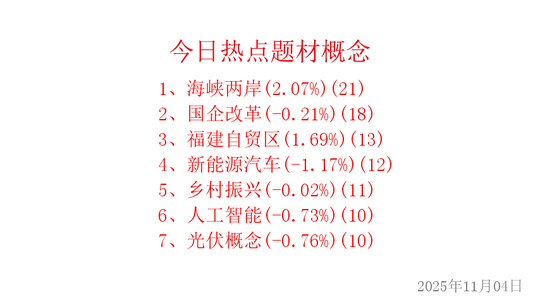 做主线,抓龙头!今天是2025年11月04日,我们来复盘和梳理今日的热点题材概念主线。