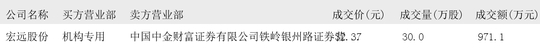 宏远股份今日机构专用买入席位为1席,成交量共30.00万股,成交额共971.10万元,成交额占流通市值比例为440.25%。