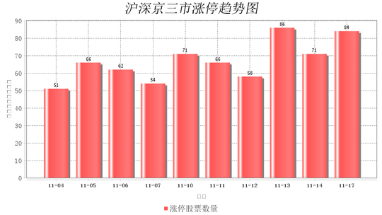 今日沪深京三市一共84支股票涨停,较上一个交易的71支增加13支。