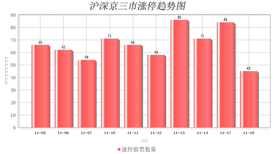 今日沪深京三市一共45支股票涨停,较上一个交易的84支减少39支。