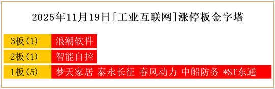 一共有7支个股涨停。其中,浪潮软件3板;智能自控2板;梦天家居、泰永长征、春风动力、中船防务、*ST东通1板。