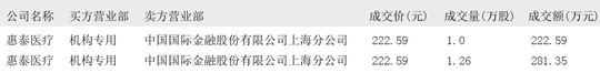 惠泰医疗今日机构专用买入席位为2席,成交量共2.26万股,成交额共503.94万元,成交额占流通市值比例为-375.54%。