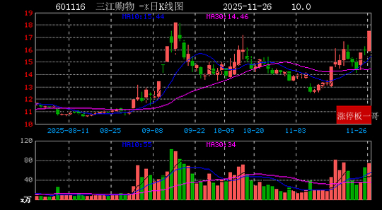 9、三江购物(601116)(10.0%)