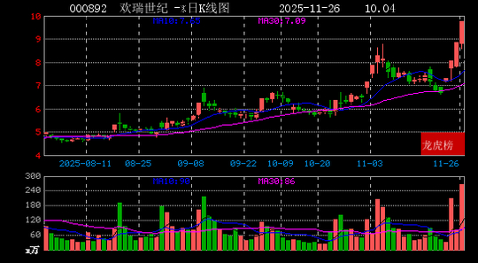 截止收盘,欢瑞世纪报收9.75元/股,涨幅10.04%,成交量265万手,成交额24.44亿元,换手率37.37%。今日4板。