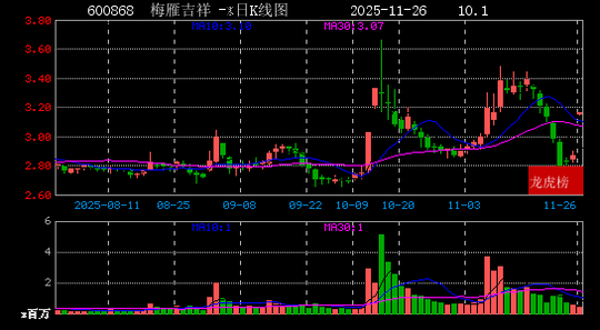 截止收盘,梅雁吉祥报收3.16元/股,涨幅10.1%,成交量42万手,成交额1.34亿元,换手率2.23%。今日1板。