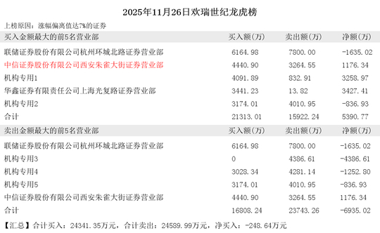 【汇总】合计买入:24341.35万元,合计卖出:24589.99万元,净买入:-248.64万元。