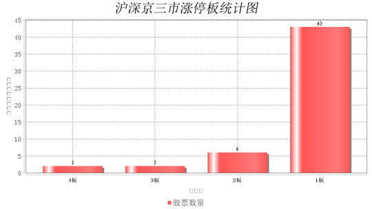 4板共2支,3板共2支,2板共6支,1板共43支,市场当前最高板为4连板!