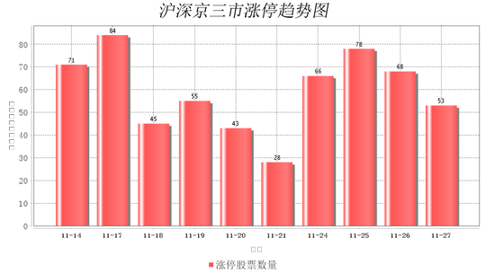 今日沪深京三市一共53支股票涨停,较上一个交易的68支减少15支。