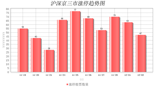今日沪深京三市一共47支股票涨停,较上一个交易的63支减少16支。