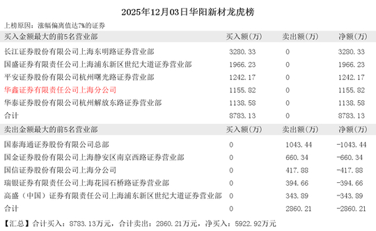 【汇总】合计买入:8783.13万元,合计卖出:2860.21万元,净买入:5922.92万元。