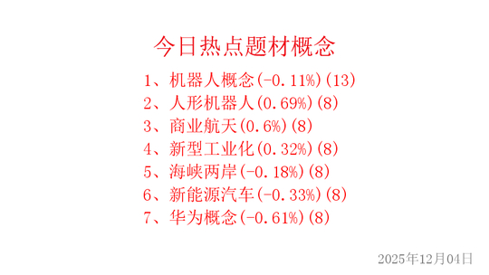 做主线,抓龙头!今天是2025年12月04日,我们来复盘和梳理今日的热点题材概念主线。