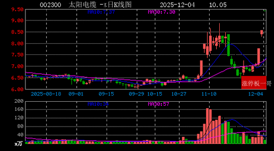 1、太阳电缆(002300)(10.05%)