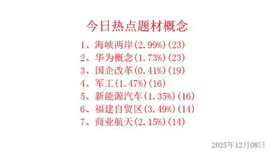做主线,抓龙头!今天是2025年12月08日,我们来复盘和梳理今日的热点题材概念主线。